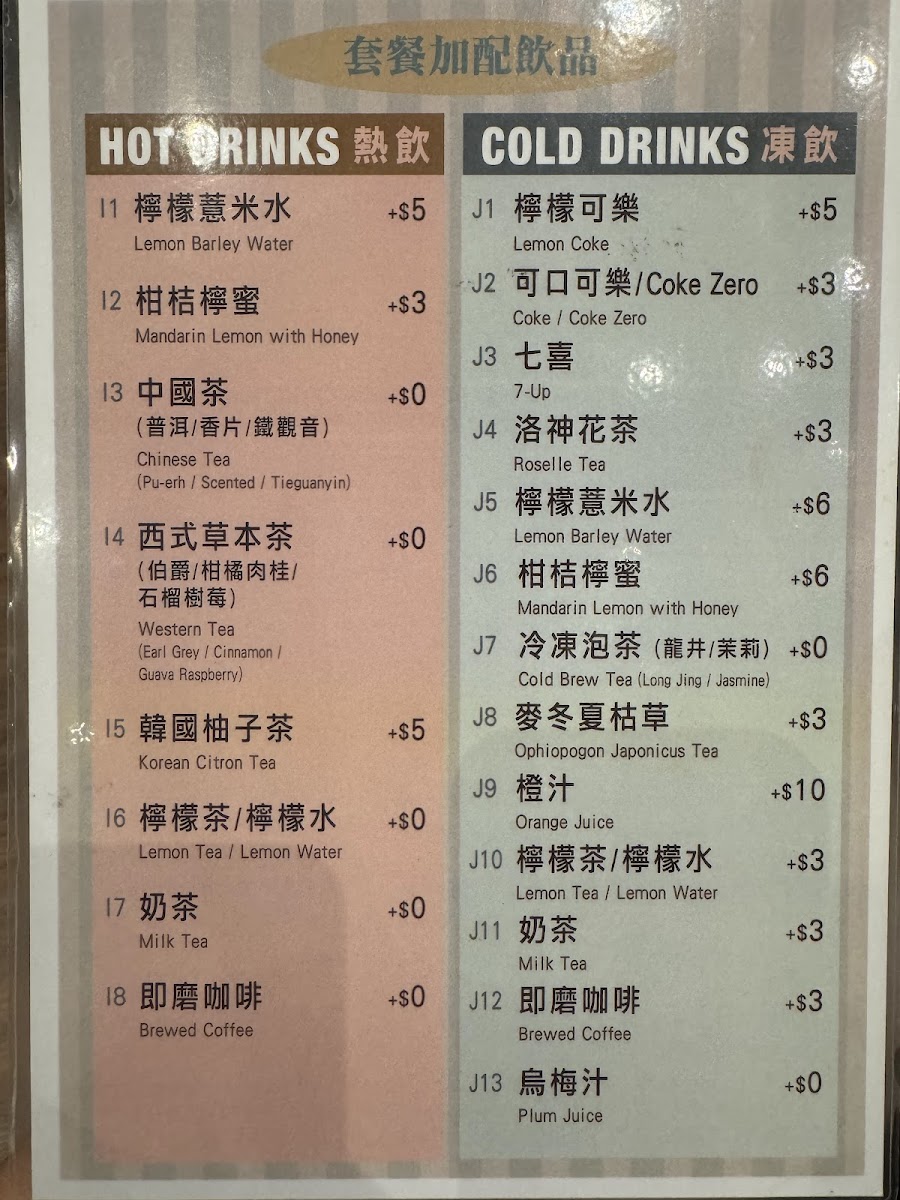 配麵底 (1款)、湯底 (1款)及飲品